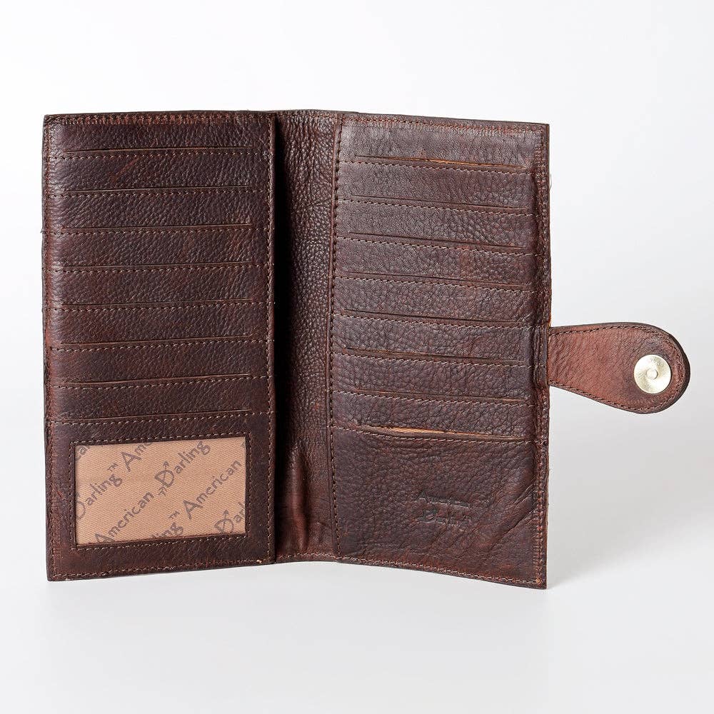 Crafted from high-quality full grain leather, this wallet is soft, supple, and designed to age beautifully over time. The tooled floral scrolls are accented by a striking turquoise backdrop, giving it a bold yet timeless look. Durable antique-finish metal fittings ensure it’s built to last.